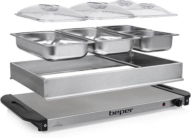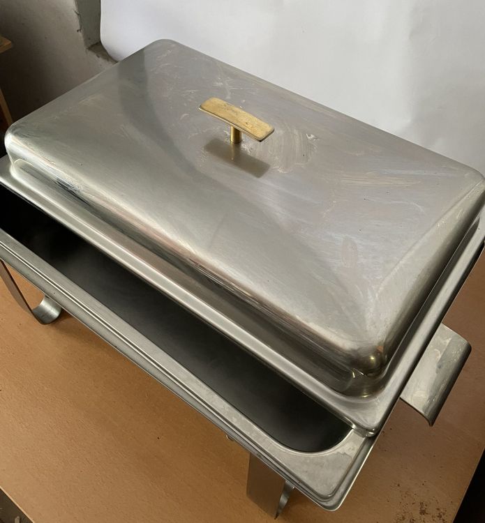 Perfekt für dein nächstes Event! Dieser Edelstahl-Buffetwärmer hält dein Essen schön warm und sieht dabei noch richtig edel aus. Mit zwei Platten und klappbarem Ständer - super praktisch für Transport und Aufbewahrung. Wird mit Alkohollampe oder Brennstoffdosen betrieben. Die hohlen Griffe sind verbrühungssicher, der Deckel hat stabile Griffe und kann aufgestellt werden. Abgerundete Ecken sorgen für Sicherheit. Einfach Wasser in die untere Schale, heizen und das Essen bleibt im oberen Behälter perfekt warm. Leicht zu reinigen, die Pfanne ist abnehmbar. Ideal für Hochzeiten, Catering, Partys oder Büffets. Macht dein Essen zum Blickfang und hält es lange warm. Profi-Qualität für zu Hause oder gewerbliche Nutzung!