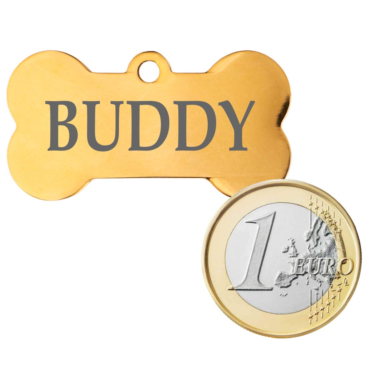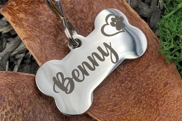 Hey, diese personalisierte Hundemarke ist einfach perfekt für deinen Vierbeiner! In praktischer Knochenform - 50x30mm groß und nur 20g leicht. Aus hochwertigem Edelstahl - rostet nicht und hält ewig! Du kannst Vorder- und Rückseite mit Namen, Telefonnummer und Adresse gravieren lassen. Wähle eins von vier süßen Motiven: Pfote, Herzen, Stern oder Blume. Die Lasergravur ist gestochen scharf und verblasst nicht - bleibt auch nach Regen und Toben lesbar! Leise und leicht - stört deinen Hund nicht beim Laufen. Mit Edelstahlring für einfache Befestigung am Halsband. Erhältlich in Silber, mattschwarz oder gold - für jeden Hundetyp den passenden Look! Hergestellt in Italien - Qualität die überzeugt! Perfektes Geschenk für Hundebesitzer - praktisch und stylisch zugleich!