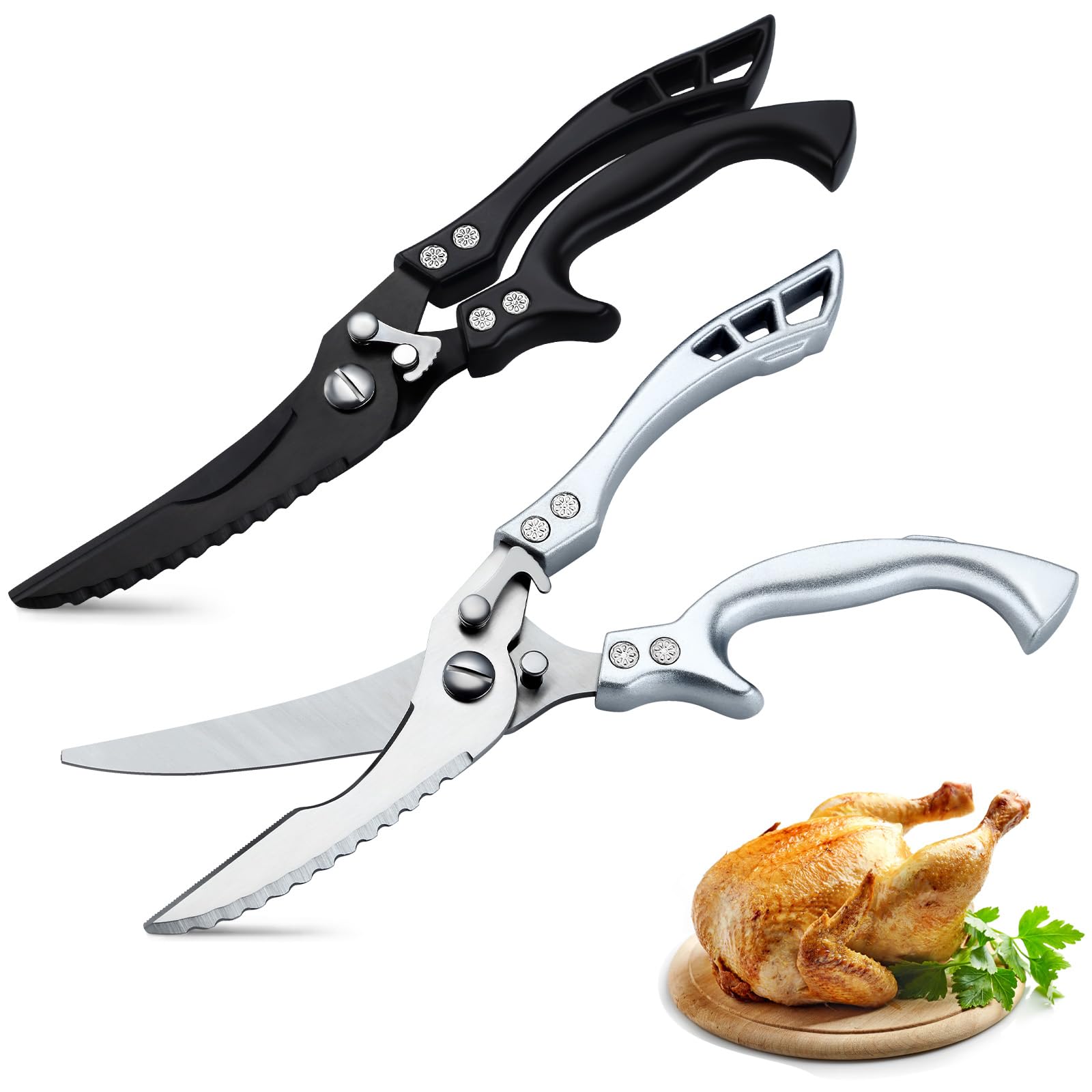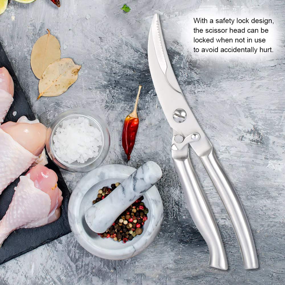 Mann, diese Küchenschere ist ein absolutes Kraftpaket! Aus robustem Edelstahl gefertigt, schneidet sie einfach alles - von Hühnchen über Fleisch bis hin zu Meeresfrüchten. Sogar Knochen machen ihr keine Probleme! Die gezahnte Kante gibt super Halt, sodass nichts verrutscht. Besonders praktisch: Sie ist spülmaschinenfest, also einfach rein damit nach dem Gebrauch. Die ergonomischen Griffe liegen gut in der Hand und ermüden nicht, selbst bei längerem Schneiden. Perfekt für den täglichen Gebrauch in der Küche, aber auch für besondere Anlässe oder wenn du mal wieder ein Festmahl zubereitest. Ein super Geschenk für alle, die gerne kochen! Egal ob du Geflügel zerlegst, Fisch filetierst oder einfach nur Verpackungen öffnest - diese Schere ist dein neuer bester Freund in der Küche. Einfach unverzichtbar für jeden Hobbykoch!