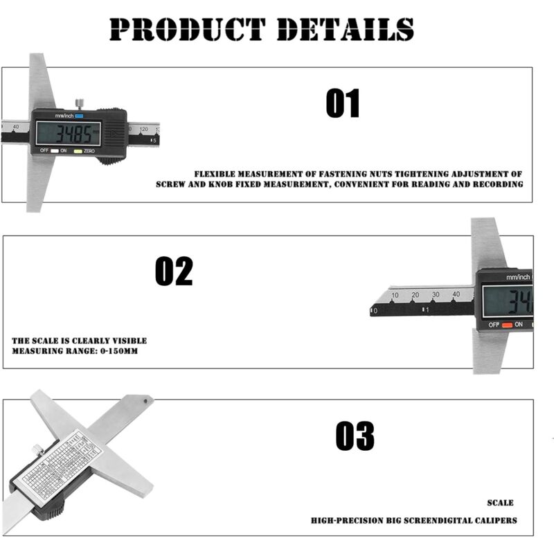 • Yosoo Digitaler Tiefenmessschieber - Edelstahl Messwerkzeug 0-150mm