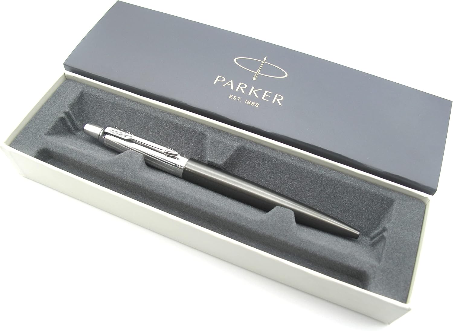 Ein echter Klassiker seit 1954! Der Parker Jotter ist nicht nur ein Schreibgerät, sondern eine echte Stilikone. Dieses Premium-Modell aus Edelstahl mit diagonaler Laser-Gravur sieht einfach edel aus. Der typische \Klick\-Mechanismus ist unverwechselbar.