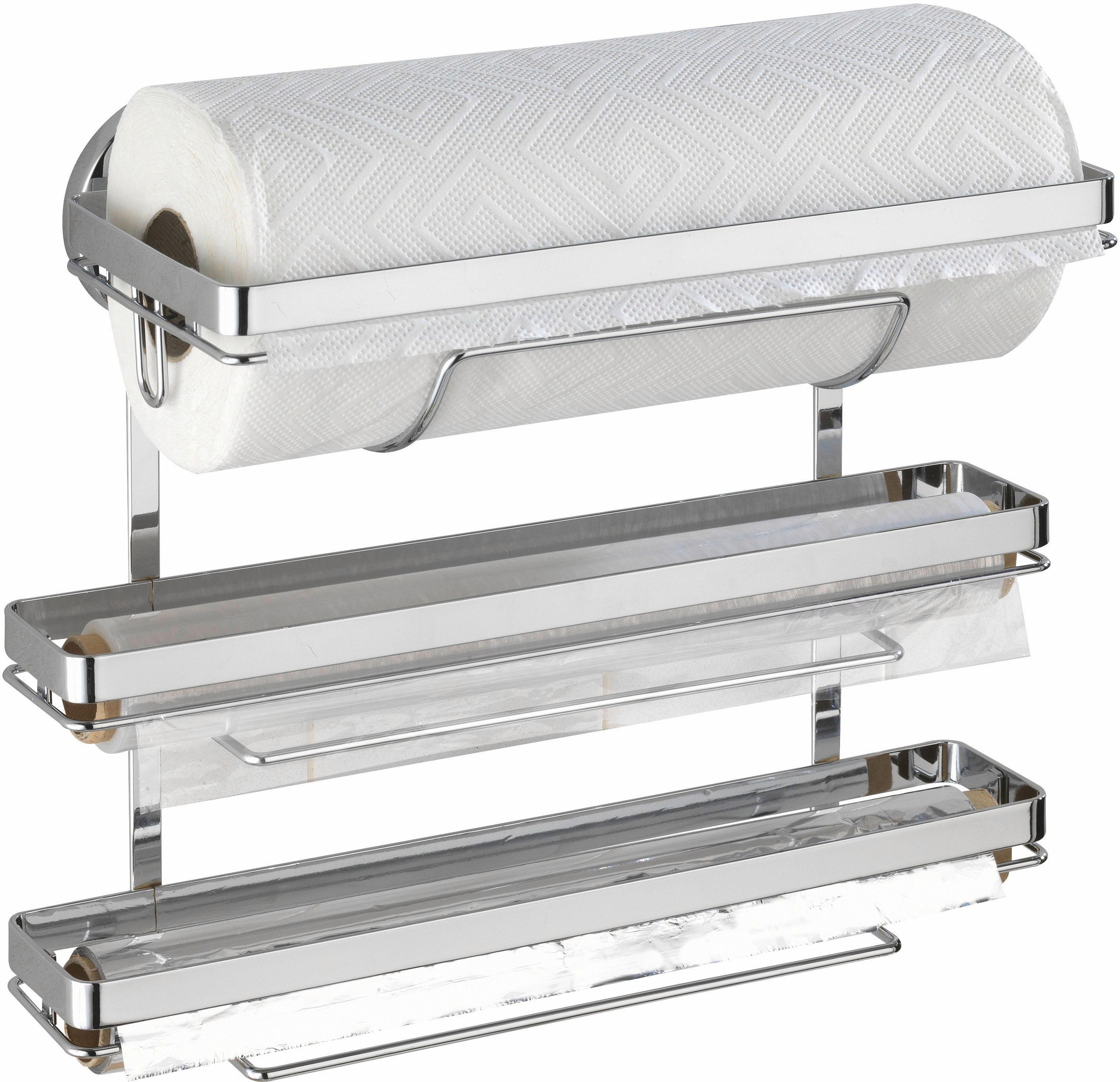 Richtig praktischer Küchenhelfer von Wenko! Dieser Edelstahl-Küchenrollenhalter hat alles, was du brauchst: Platz für die Küchenrolle, ein magnethaftendes Glasboard für Notizen und Rezepte, plus eine praktische Ablage für Gewürze oder Öle. Das coole Sternen-Motiv sieht dabei super stylisch aus. Maße: 30x26x14,5cm - passt also auch in kleinere Küchen. Montage ist super einfach: entweder mit den beiliegenden Schrauben und Dübeln anbohren oder mit dem Strip-it Klebestreifen einfach ankleben. Die zwei mitgelieferten Magnete halten deine Notizen sicher fest. Endlich alles griffbereit an einem Platz - Küchenrolle, Notizen und die wichtigsten Küchenhelfer. So macht Kochen noch mehr Spaß!