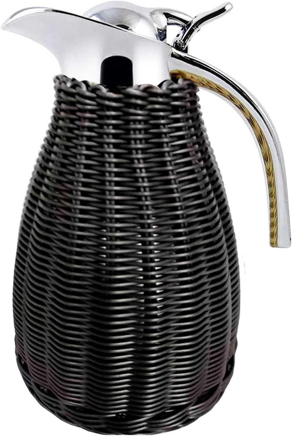 Liebst du heißen Kaffee oder erfrischend kalte Getränke? Diese wunderschöne Thermokaraffe aus Edelstahl hält deine Getränke bis zu 20 Stunden warm oder kalt! Mit 1,5 Litern Fassungsvermögen ist sie perfekt für die ganze Familie oder für einen langen Tag im Büro. Das besondere Highlight: Der handgefertigte Rattankörper sieht nicht nur super stylisch aus, sondern gibt dir auch einen angenehmen, rutschfesten Griff. Der Metalldeckel mit Druckknopf lässt sich super einfach mit einer Hand öffnen und schließen - praktisch wenn du gerade beide Hände voll hast. Und das Beste: Beim Ausgießen tropft und spritzt nichts! Die doppelwandige Isolierung sorgt dafür, dass dein Kaffee den ganzen Morgen heiß bleibt oder dein Wasser den ganzen Tag erfrischend kühl. Aus hochwertigem 304 Edelstahl und 100% BPA-frei - also völlig unbedenklich für deine Gesundheit. Perfekt für Kaffee, Tee, Wasser, Saft oder sogar Wein. Mit 26,3cm Höhe und 16,3cm Durchmesser passt sie in die meisten Küchenschränke. Eine echte Augenweide für jeden Tisch und ein praktischer Helfer für den Alltag. Trinkgenuss pur - warm oder kalt, ganz wie du es magst!