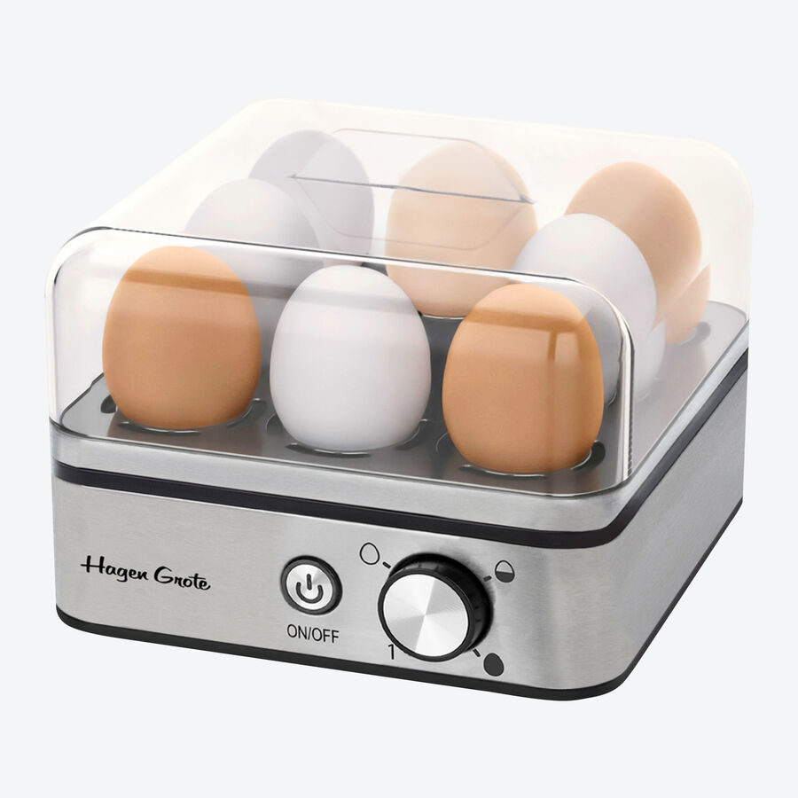 Frühstücks-Fans aufgepasst! Dieser 6-in-1 Eierkocher macht alles mit Eiern: kochen, pochieren, Rührei, Omeletts, dämpfen - bis zu 6 Eier gleichzeitig! Die automatische Abschaltfunktion sorgt dafür, dass nichts anbrennt oder überkocht. Einfach Knopf drücken und der Eierkocher macht den Rest. Die herausnehmbaren Schalen sind spülmaschinenfest - super easy zu reinigen. Mit den Maßen 21x15x14 cm ist er kompakt und passt in jede Küche. Das Edelstahl-Design in Weiß sieht dabei noch richtig gut aus. Perfekt für alle, die morgens wenig Zeit haben oder einfach gerne abwechslungsreich frühstücken. Eier-Kocher-Profi für deine Küche!