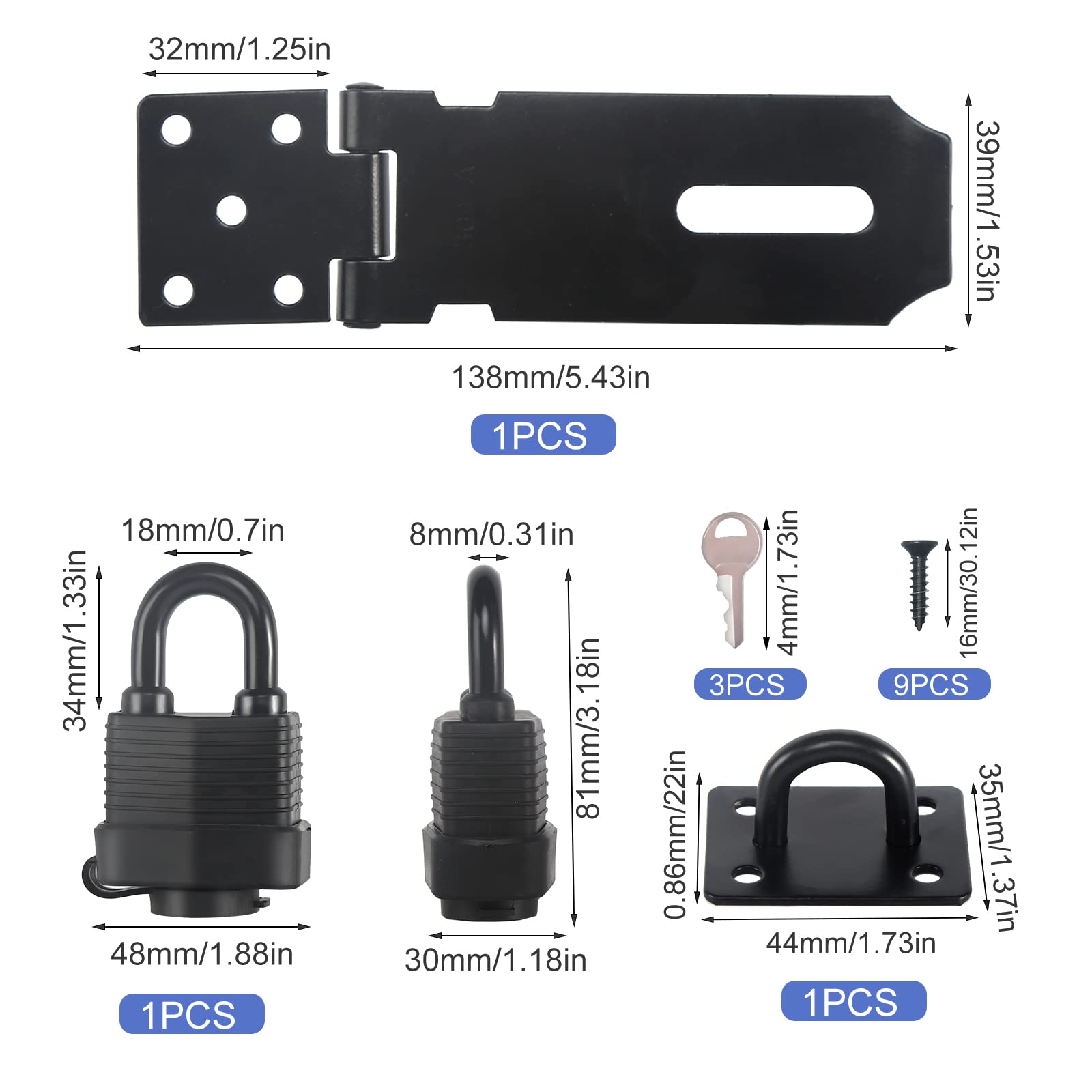 Für mehr Sicherheit und Privatsphäre! Diese 4 Türriegel aus robustem 304-Edelstahl sind korrosionsbeständig und halten auch bei Feuchtigkeit stand. Das schwarze, polierte Finish sieht nicht nur stylisch aus, sondern ist auch super glatt zu bedienen. Mit Vorhängeschloss-Loch (Vorhängeschloss nicht im Lieferumfang) für zusätzlichen Schutz - ideal für Türen, Tore oder Zäune, die du abschließen möchtest. Einfach montieren - mit den mitgelieferten Schrauben und einem Schraubendreher ist der Riegel schnell angebracht. Perfekt für Schlafzimmer, Badezimmer, Garagen, Keller oder Gartentore. Das schlichte Design passt zu jedem Einrichtungsstil. Ob du deine Privatsphäre schützen oder wertvolle Gegenstände sichern willst - mit diesen Riegeln schläfst du beruhigt!
