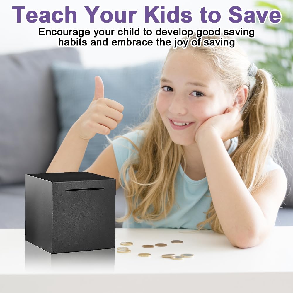 Diese Spardose ist echt clever - man kommt nicht mehr ran! Aus robustem Edelstahl - rostfrei und stoßfest. 12x12cm groß - fasst bis zu 800 Münzen oder 1500 Scheine! Nur ein Einwurfschlitz - öffnen geht nur mit Hammer oder Säge! Perfekt für Sparziele - kein schnelles Zugreifen möglich! Schickes schwarzes Design - passt in jedes Zimmer. Ideal für Erwachsene und Kinder - fördert Spar-Disziplin! Super Geschenk für alle, die sparen wollen - praktisch und lehrreich! Macht das Sparen zum echten Erlebnis - bis zum großen Knack! Für Reisekasse oder langfristige Ersparnisse - einfach genial!