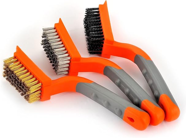 Dieses 3-teilige Drahtbürsten-Set von DesertBoy ist der absolute Alleskönner für jede Werkstatt! Aus hochwertigem Edelstahldraht und kupferbeschichtetem Stahldraht gefertigt, sind diese Bürsten einfach unverwüstlich. Mit nem Drahtdurchmesser von 0,3mm und ner Bürstenlänge von 125mm bei ner Gesamtlänge von 240mm kriegst du damit echt jeden Dreck weg. Die Borsten sind super dicht angeordnet und fallen nicht leicht aus - das merkt man sofort bei der Qualität. Perfekt zum Entrosten von Metallteilen, Entfernen von Schweißschlacken, Entgraten oder auch zum Reinigen vom Grill. Die gebogenen Kunststoffgriffe liegen super in der Hand und machen die Arbeit viel angenehmer. Und das praktische: Am Ende ist ne Aufhängeschlaufe, sodass du die Bürsten platzsparend verstauen kannst. Ob in der Garage, der Werkstatt oder auf der Baustelle - mit diesen drei Bürsten bist du für so ziemlich jede Reinigungsaufgabe bestens gerüstet. Einfach ein Muss für jeden Handwerker!