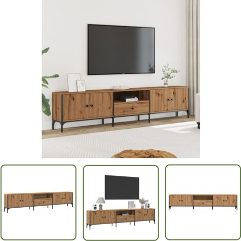 Endlich Ordnung für deine Unterhaltungselektronik! Dieser stylische TV-Schrank in Artisan-Eiche bietet mit 200cm Länge reichlich Platz für TV-Gerät, Soundbar, Spielekonsolen und Zubehör. Die praktische Schublade und geschlossenen Türen schützen vor Staub und sorgen für aufgeräumtes Aussehen. Aus stabilem Holzwerkstoff und Metall gefertigt, trägt er bis zu 20kg pro Boden. Die verstellbaren Füße gleichen unebene Böden aus - super praktisch! Einfach zusammenzubauen, inklusive klarer Anleitung. Perfekt für Wohnzimmer, Schlafzimmer oder Home-Office. Sieht nicht nur gut aus, sondern ist auch mega funktional!