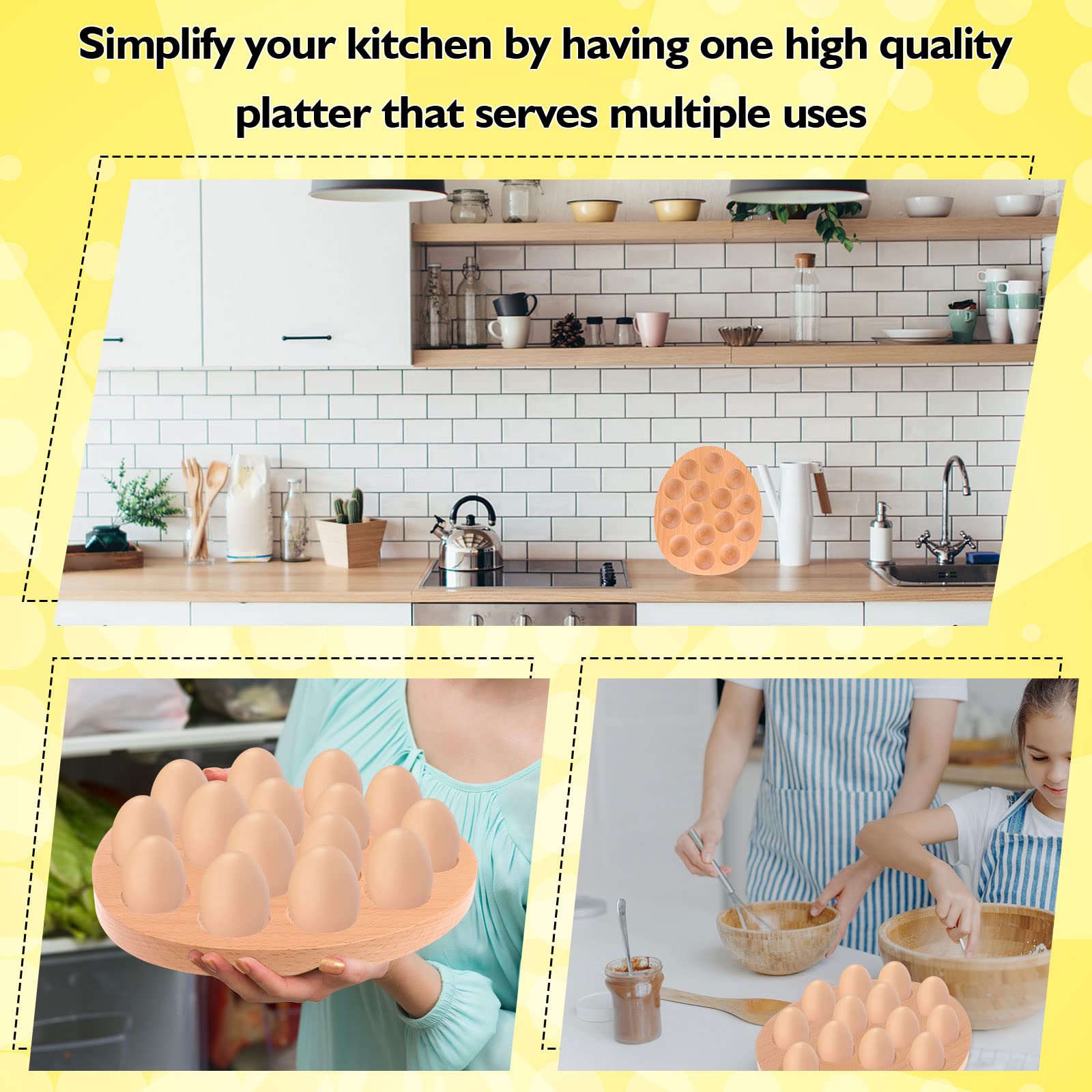 Wow, diese Holz-Eierablage ist ja mega praktisch! 24 Löcher für deine Eier - ob frisch, gekocht oder als Osterdeko! Maße: 40x29,5x1,7cm - passt super auf die Küchenarbeitsplatte oder in den Kühlschrank. Aus robustem Holz - flacher Boden für guten Stand. Aber das ist noch nicht alles: Du kannst sie auch als Schneidebrett, Käseplatte oder für Aufschnitt verwenden! Super vielseitig und spart Platz in der Küche. Perfekt für Familien, Frühstücksliebhaber oder wenn du Gäste hast. Einfach die Eier reinlegen - und alles ist ordentlich und griffbereit!