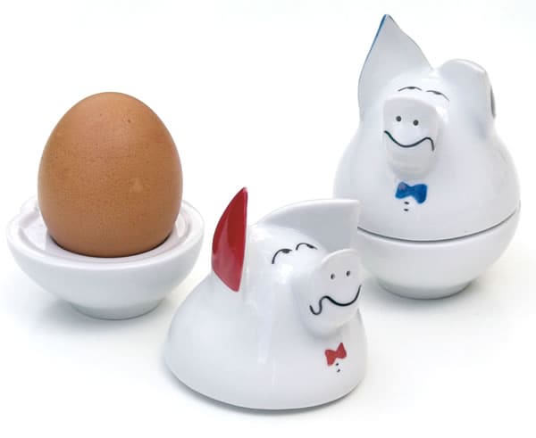 6 Eierbecher Set Mit Eierschneider - Porzellan Eierbecher Stapelbar Weiß