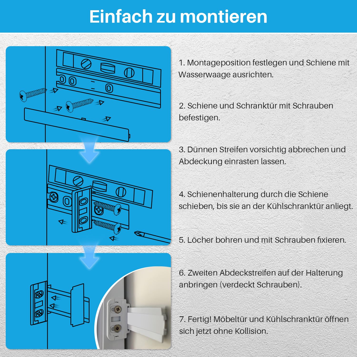 Deine Kühlschranktür wackelt oder schließt nicht richtig? Dieses Türmontageset löst das Problem! Passt für viele Marken: Whirlpool, Bauknecht, Indesit, Ignis. Original-Codes: C00312150, 481231019131. Komplett-Set mit 4 Schienen, 4 Laufleisten und Abdeckkappen. Einfach zu montieren - sorgt für stabile Türbefestigung. Geräuscharmes Design - keine quietschenden Türen mehr. Mach deinen Einbau-Kühlschrank wieder wie neu! Perfektes Ersatzteil für Heimwerker - spart teure Reparaturkosten.