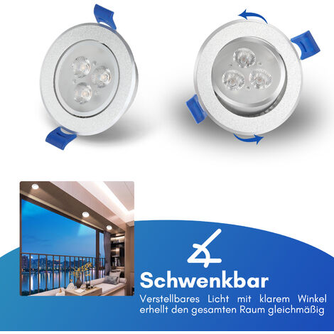 Moderne Beleuchtung für dein Zuhause! Dieses Set mit 20 LED Einbaustrahlern von Fiqops bringt richtig professionelles Licht in jeden Raum. Jeder Spot hat 3W Leistung und liefert satte 245 Lumen in angenehmem Kaltweiß (6500K). Das Besondere: Die Spots sind um 15° nach links und rechts schwenkbar - so kannst du das Licht genau dorthin lenken, wo du es brauchst. Mit einem Außendurchmesser von 85mm und einer Einbautiefe von 40mm passen sie perfekt in Standard-Deckenlöcher von 60-80mm. Die Installation ist denkbar einfach: Loch bohren, Strom anschließen (230V), Spot einklicken - fertig! Hergestellt aus hochwertigem Aluminium mit effektiver Wärmeableitung, halten diese LEDs bis zu 35.000 Stunden. Perfekt fürs Badezimmer, die Küche, Wohnzimmer oder Flur. Egal ob Neubau oder Renovierung - mit diesen Einbaustrahlern schaffst du eine moderne, energieeffiziente Beleuchtung, die sich sehen lassen kann. Und mit 20 Stück im Set kannst du gleich mehrere Räume ausstatten!
