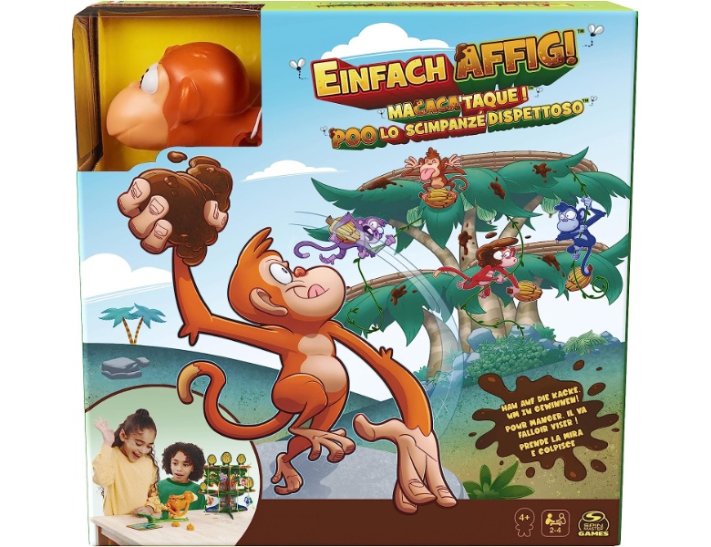 Achtung, Affenalarm! Bei 'Einfach affig' wird's richtig lustig. Stell dir vor: Du hast nen Affen mit ner Schleuder und Knete, die wie Affenkacke aussieht. Damit schießt du auf nen Bananenbaum und versuchst, möglichst viele Bananen runterzuholen. Klingt verrückt? Ist es auch! Für 2-4 Spieler ab 4 Jahren, ne Runde dauert etwa 25 Minuten - perfekt für nen unterhaltsamen Familienabend. Das 3D-Spielmaterial sieht super aus und macht richtig Spaß. Aber Vorsicht: Nicht zu fest drücken, sonst fällt der ganze Baum um! Wer zuerst mit seinem Äffchen in der Baumkrone ankommt, gewinnt. Lachen garantiert! Mit Affenschleuder, Knetmasse, Bananen und allem Drum und Dran. Einfach genial für kleine und große Affenfreunde!