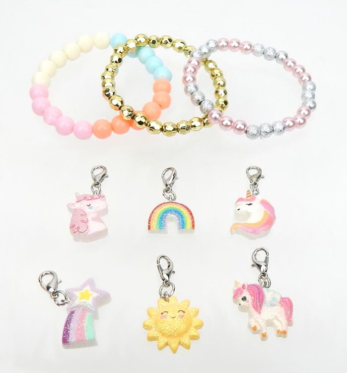 Oh wie süß! Dieses Einhorn-Schmuckset lässt kleine Mädchenherzen höher schlagen. Halskette und Armband in knalligen Pastellfarben - einfach magisch! Die Holzperlen sind leicht und hautfreundlich, das Armband dehnbar und die Halskette hat nen praktischen Verschluss. Perfekt für kleine Hände, die selbständig an- und ausziehen wollen. Ideal für Geburtstage, Partys oder einfach mal so. Fördert nebenbei auch noch die Feinmotorik - lernen mit Spaß sozusagen! Die bunten Farben und das Einhorn-Motiv begeistern jede kleine Prinzessin. Macht sich super als Geschenk - verpackt ist's auch schon. Einfach umhängen und strahlen! Das Set sorgt für glückliche Kindergesichter und tolle Fotos. Ein Must-have für alle Einhorn-Fans!