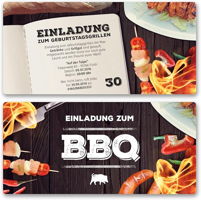 10 Grillparty Einladungskarten - BBQ Sommer Geburtstag