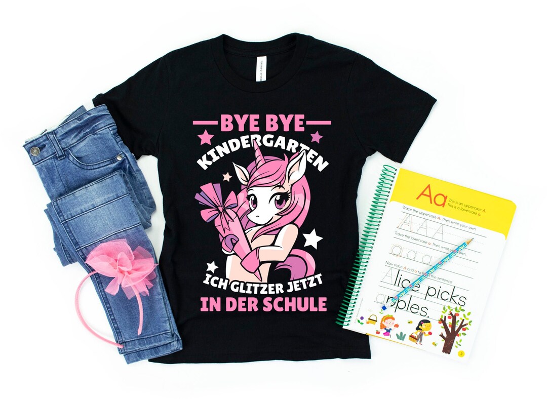 Zur Einschulung nur das Beste für deine kleine Prinzessin! Dieses süße T-Shirt mit dem Einhorn-Motiv und der Aufschrift 'Tschüss Kindergarten, ich glitzer jetzt in der Schule' bringt jedes Mädchen zum Strahlen. Aus weicher Baumwolle gefertigt - angenehm auf der Haut und robust genug für den Schulalltag. Der gerade Schnitt und der bequeme Rundhalsausschnitt sitzen perfekt. Einfach bei 30°C waschen und auf links drehen - so bleibt das Motiv lange schön. Das perfekte Geschenk zur Einschulung oder für die Zuckertüte. Mach den ersten Schultag zu einem unvergesslichen Erlebnis!