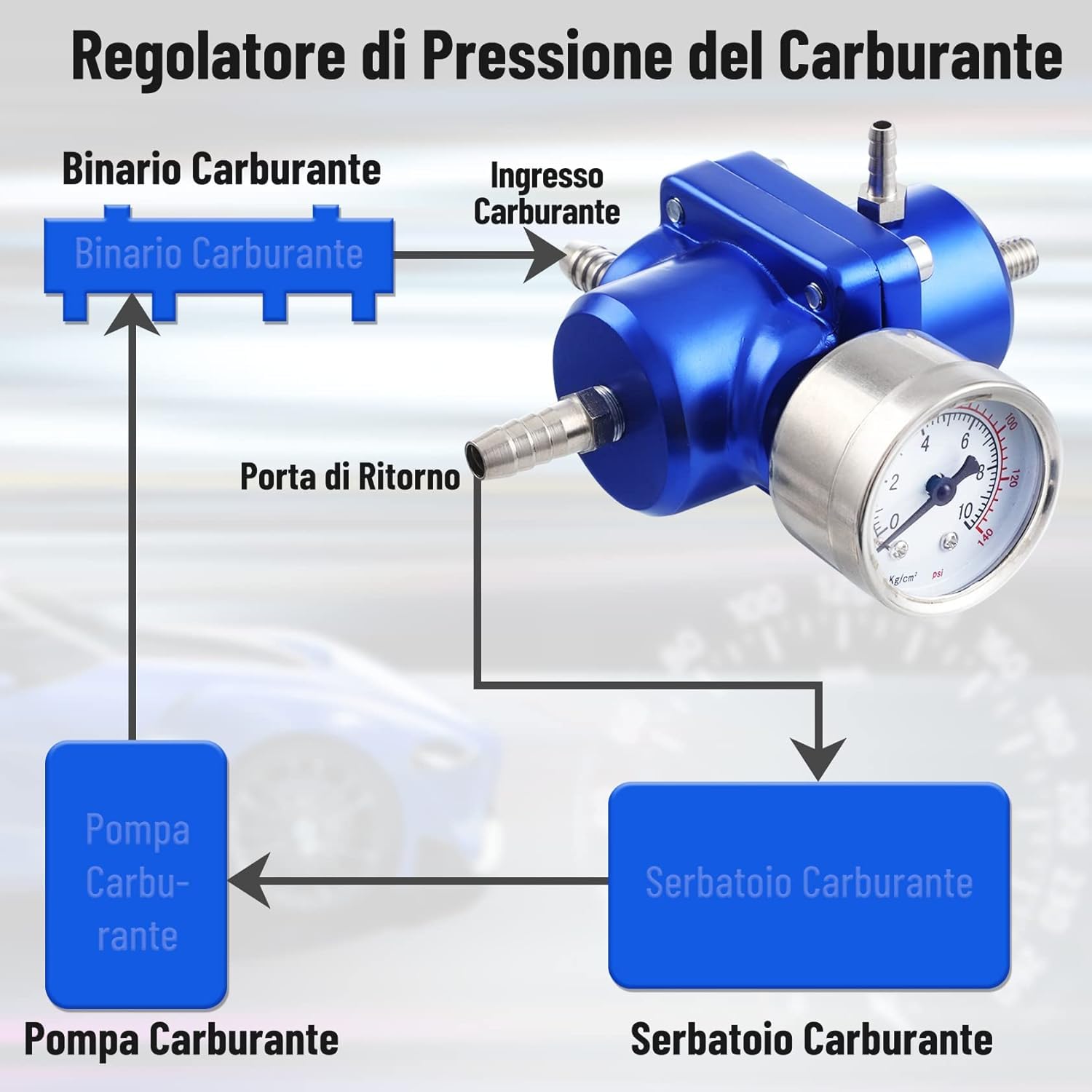 • Keenso Kraftstoffdruckregler - Einstellbar 0-140 PSI Mit Manometer