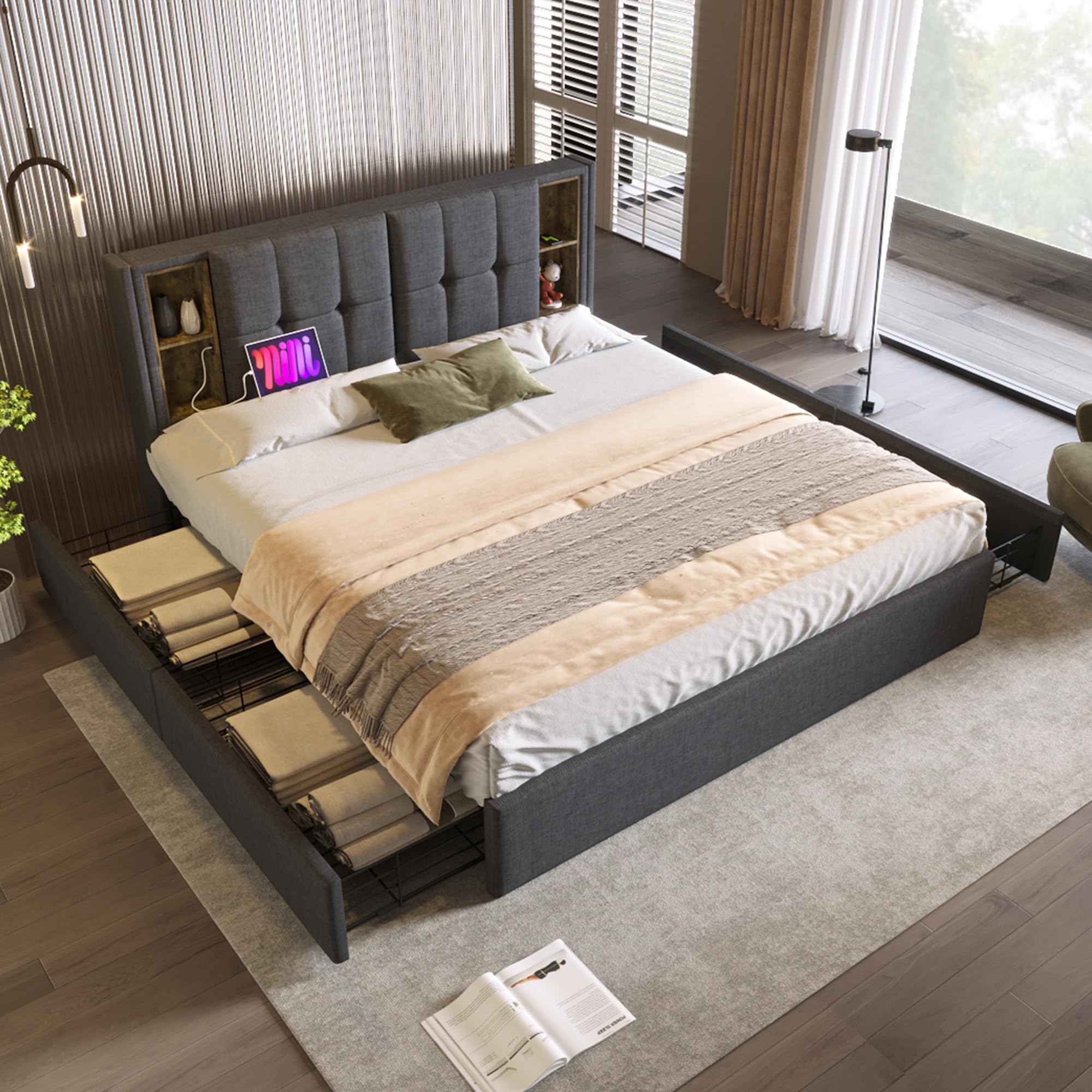 Der absolute Game-Changer: Hydraulischer Stauraum unter dem Bett! Perfekt fĂŒr BettwĂ€sche, Decken oder saisonale Kleidung. So wird jeder Zentimeter genutzt! Empfohlene MatratzenstĂ€rke: 22-24cm.