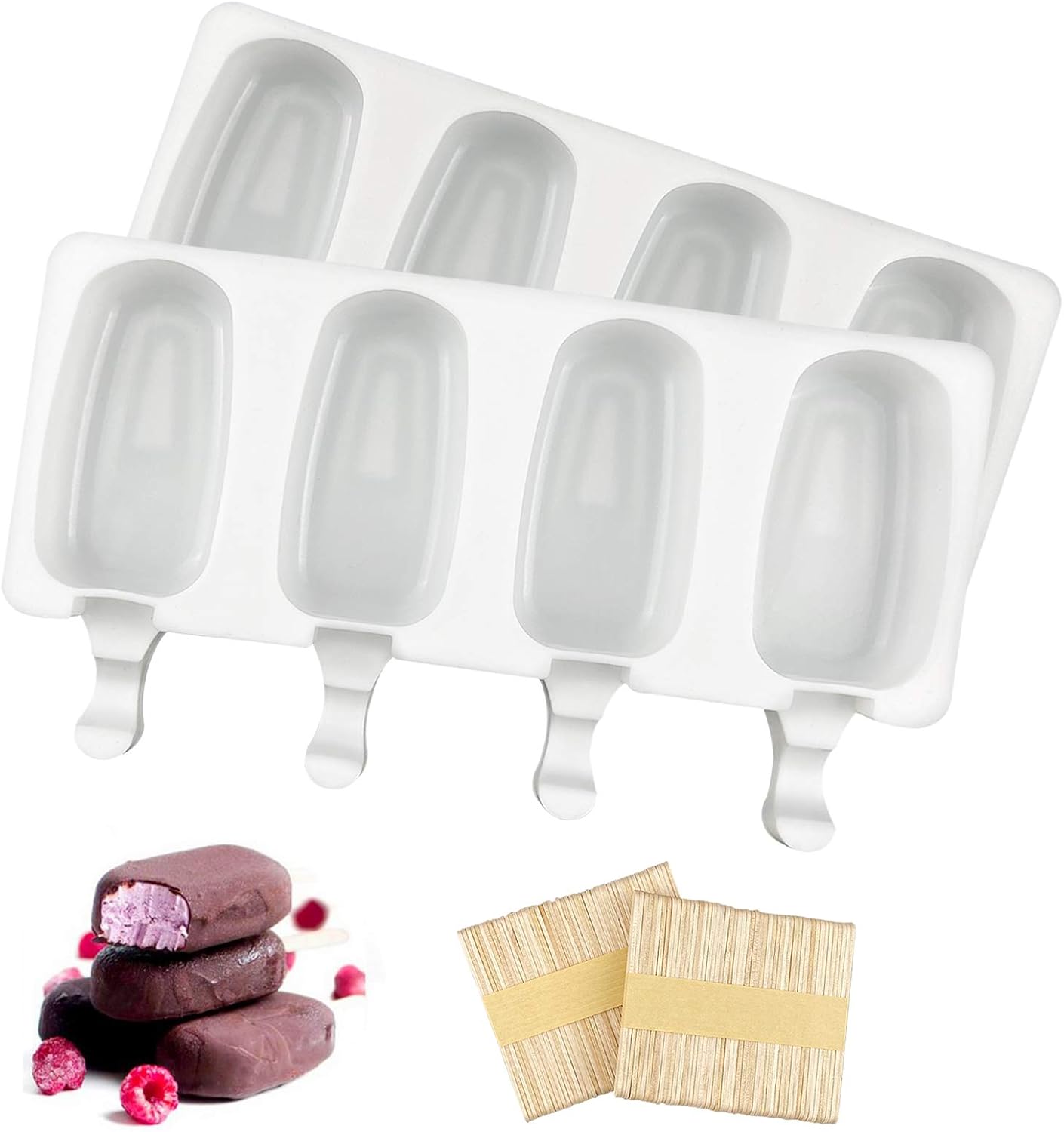Sommer, Sonne, Eisgenuss! Mit diesem komplettem Set kannst du deine eigenen kreativen Eisleckereien zaubern. Enthalten sind 2 robuste Silikonformen mit je 4 Kavitäten plus praktischen Deckeln - so bleibt nichts verschütten. Dazu gibt's 100 Holzstäbchen, eine Reinigungsbürste und sogar einen Falttrichter für sauberes Einfüllen. Das Silikon ist lebensmittelecht, BPA-frei und total weich - das Eis löst sich superleicht nach kurzem Antauen an der Oberfläche. Einfach deine Lieblingsmischung aus Joghurt, Säften, Fruchtpüree oder Schokolade vorbereiten, einfüllen und über Nacht gefrieren lassen. Die Reinigung ist ein Kinderspiel: entweder per Hand mit der Bürste oder einfach in die Spülmaschine. Perfekt für Familien, Kindergeburtstage oder einfach um an heißen Tagen leckere, gesunde Eisalternativen selbst zu machen. Deine Kinder werden begeistert sein, wenn sie ihre eigenen Eiskreationen gestalten können!