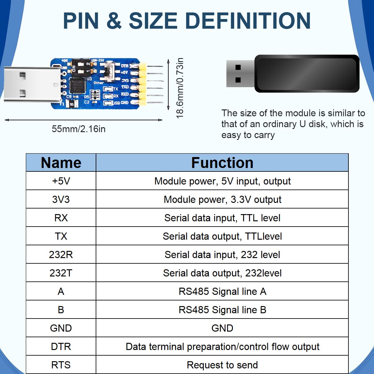 Moin Technik-Freaks! Dieser ElectroWorldFR Konverter ist ein echtes Multitalent - 6 Funktionen in einem kleinen Gerät! Kann USB zu TTL, RS232, RS485 konvertieren - und auch zwischen den Seriell-Standards hin und her. Mit dem 2102 CP Chip - stabil und zuverlässig mit Baudraten von 300 bps bis 1,5 Mbps. Super kompakt: nur 55x18 mm - passt in jede Tasche. Einfache Bedienung über die Schalter - keine komplizierte Software nötig. Kompatibel mit Windows XP bis 10 (32/64 Bit), Linux, Mac - also quasi mit allem! Mit USB 2.0 Anschluss - schnell und zuverlässig. Enthält LED-Anzeigen und Sicherung - gut geschützt also. Perfekt für Elektronik-Projekte, Arduino, Raspberry Pi oder industrielle Anwendungen. Betriebstemperatur von -40°C bis 85°C - harte Bedingungen kein Problem! Einfach anschließen, Schalter stellen und loslegen! Damit sparst du dir mehrere einzelne Adapter - alles in einem! Ein Muss für jeden Hobby-Elektroniker oder Profi!