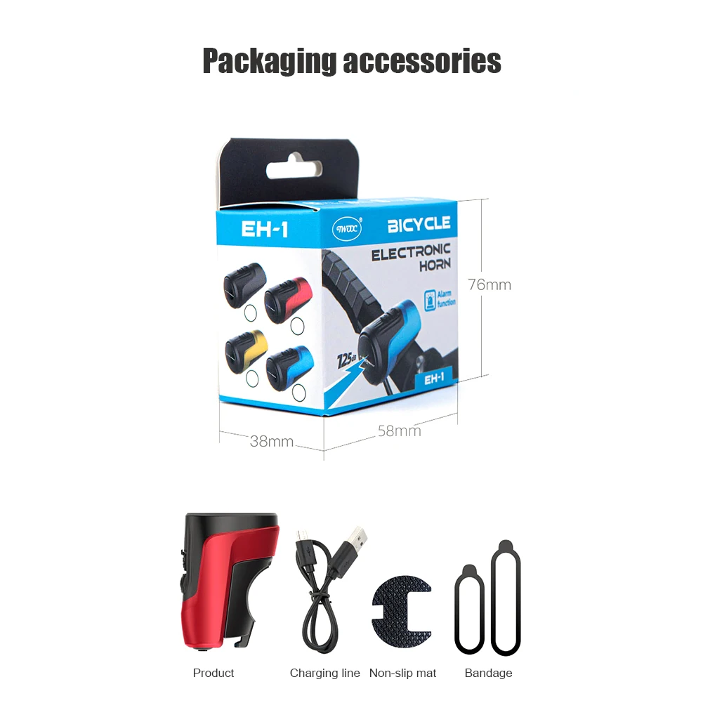• Ahuuen Elektrische Fahrradhupe - USB Wiederaufladbar, 120dB, 5 Soundmodi, IPX4 Wasserdicht