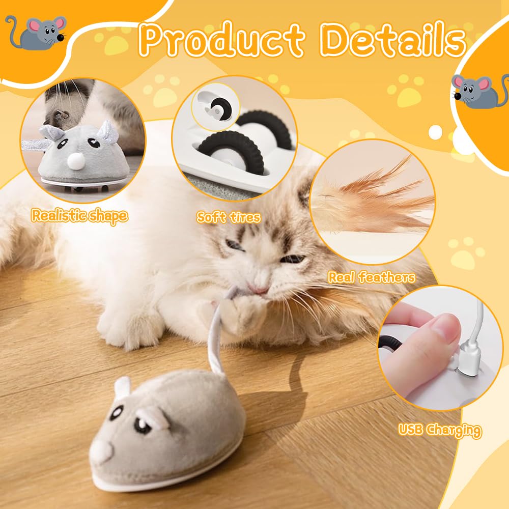 Miau! Diese elektrische Spielzeug-Maus jagt deine Katze verrückt vor Begeisterung! Mit realistischen Soundeffekten, flatterndem Federschwanz und LED-Licht weckt sie den Jagdinstinkt. Sie hat einen eingebauten Sensor, weicht automatisch Hindernissen aus und schaltet nach 5 Minuten in den Energiesparmodus. Aus weichem Plüsch und ABS-Material, schonend für Katzenpfoten. Per USB aufladbar - 2 Stunden Spielspaß pro Ladung. Ob alleine oder mit dir zusammen - deine Katze wird stundenlang beschäftigt sein und dabei Ängste und Langeweile abbauen. Einfach einschalten und zuschauen, wie der Spaß beginnt!