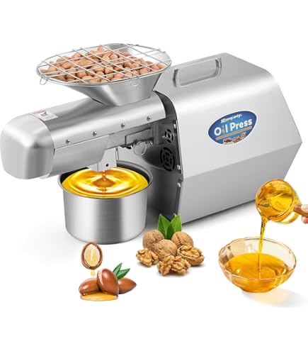 Wow, mit dieser Ölpresse machst du dein eigenes Öl! Die 600W starke Maschine aus 304 Edelstahl presst bis zu 5 kg Nüsse pro Stunde - das ist echt effizient! Ob Kaltpressung für native Öle oder Heißpressung für höhere Ausbeute - hier hast du die Wahl. Perfekt für Erdnüsse, Sonnenblumenkerne, Walnüsse, Oliven und mehr (Ölgehalt über 25%). Die Ölausbeute liegt bei 45% für Erdnüsse - super Ergebnis! Die Maschine hat Abmessungen von 41x16x31 cm und wiegt 9,69 kg - stabil und platzsparend. Mit Vorwärmfunktion bis 200°C für Heißpressung. Energieeffizient mit nur 0,5-0,6 kWh Verbrauch pro Stunde. Einfach zu reinigen und langlebig. Dein eigenes, frisches Öl ohne Zusätze - gesünder geht's nicht! Ob für den Hausgebrauch oder kleine Betriebe - diese Presse macht professionelles Ölpressen einfach!