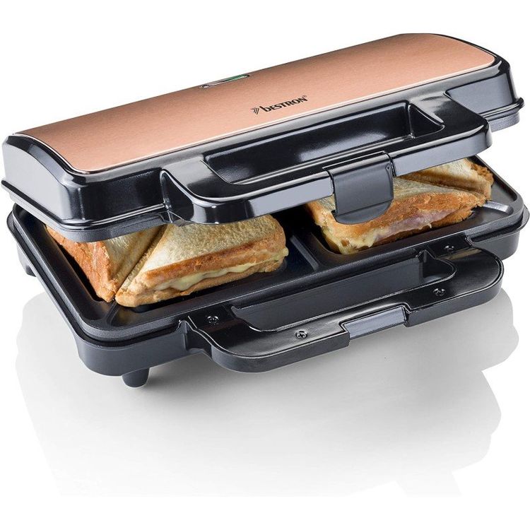 Dieser 650W Sandwichmaker ist dein neuer Küchen-Star! Perfekt für knusprige Sandwiches, aber auch als Waffeleisen oder Grill einsetzbar. Die Antihaft-Beschichtung macht das Reinigen super einfach - einfach mit einem feuchten Tuch abwischen. Der schwebende Deckel passt sich automatisch der Dicke deiner Sandwiches an für perfekte Bräunung. Mit 21,5x15,3x10,5cm kompakt und platzsparend. Die Backflächen sind 13,5x10,8cm groß - ideal für Burger, Paninis oder auch Steaks. Der aufrechte Standfuß sorgt für sicheren Stand. Einfach aufklappen, belegen, zuklappen und in wenigen Minuten hast du ein perfektes, goldbraunes Sandwich. Ob fürs Frühstück, Mittagessen oder Snacks - dieser Allrounder macht jede Mahlzeit zum Genuss. Einfach, schnell und lecker!