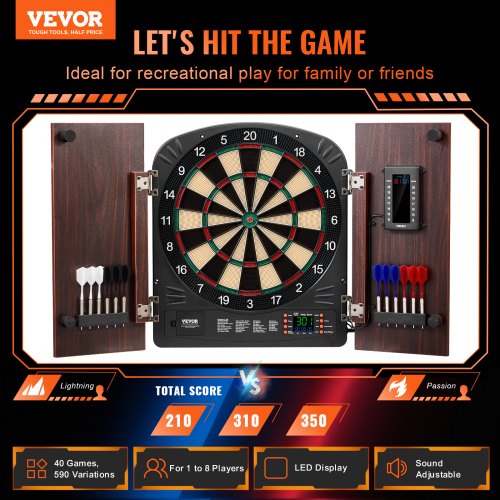Dart-Spaß der nächsten Generation! Diese elektronische Dartscheibe bringt Pub-Feeling direkt zu dir nach Hause. Mit 27 verschiedenen Spielen und 243 Unterkategorien wird es garantiert nie langweilig. Bis zu 16 Spieler können gleichzeitig mitspielen - perfekt für Partys oder Spieleabende. Die 4 LED-Displays zeigen alle Infos klar an und die weichen Kunststoff-Spitzen sind absolut sicher für Kinder und Erwachsene. Das schicke Schrank-Design mit MDF-Türen schützt deine Wände und sieht dabei noch richtig gut aus. Einfach an die Wand montieren, Strom anschließen und loslegen - der Spaß kann beginnen!