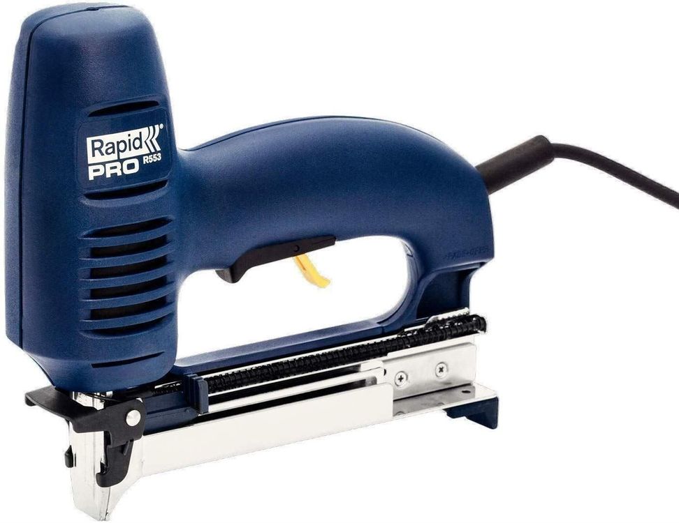 Der Rapid R553 ist dein neuer bester Freund für alle Bastelprojekte! Dieser Elektrotacker tackert sowohl Klammern Typ 53 (8-20mm) als auch Nägel Typ 8 (15-20mm). Perfekt für Bilderrahmen, Schubladen, Holzpaneelen oder kleine Möbelstücke. Mit Focused Power-Technologie für die richtige Schlagkraft - nicht zu viel, nicht zu wenig. Die abnehmbare Frontplatte verhindert Klammerstau. Rückschlagfreier Betrieb und Verriegelungsfunktion für mehr Sicherheit. Im Lieferumfang: Tacker, 1250 Klammern und 1000 Nägel - also alles was du brauchst! Maße: 75x200x265mm, Gewicht 1,55kg. Einfach einstecken und loslegen. Ob Heimwerker oder Profi - mit diesem Tacker machst du keine halben Sachen!