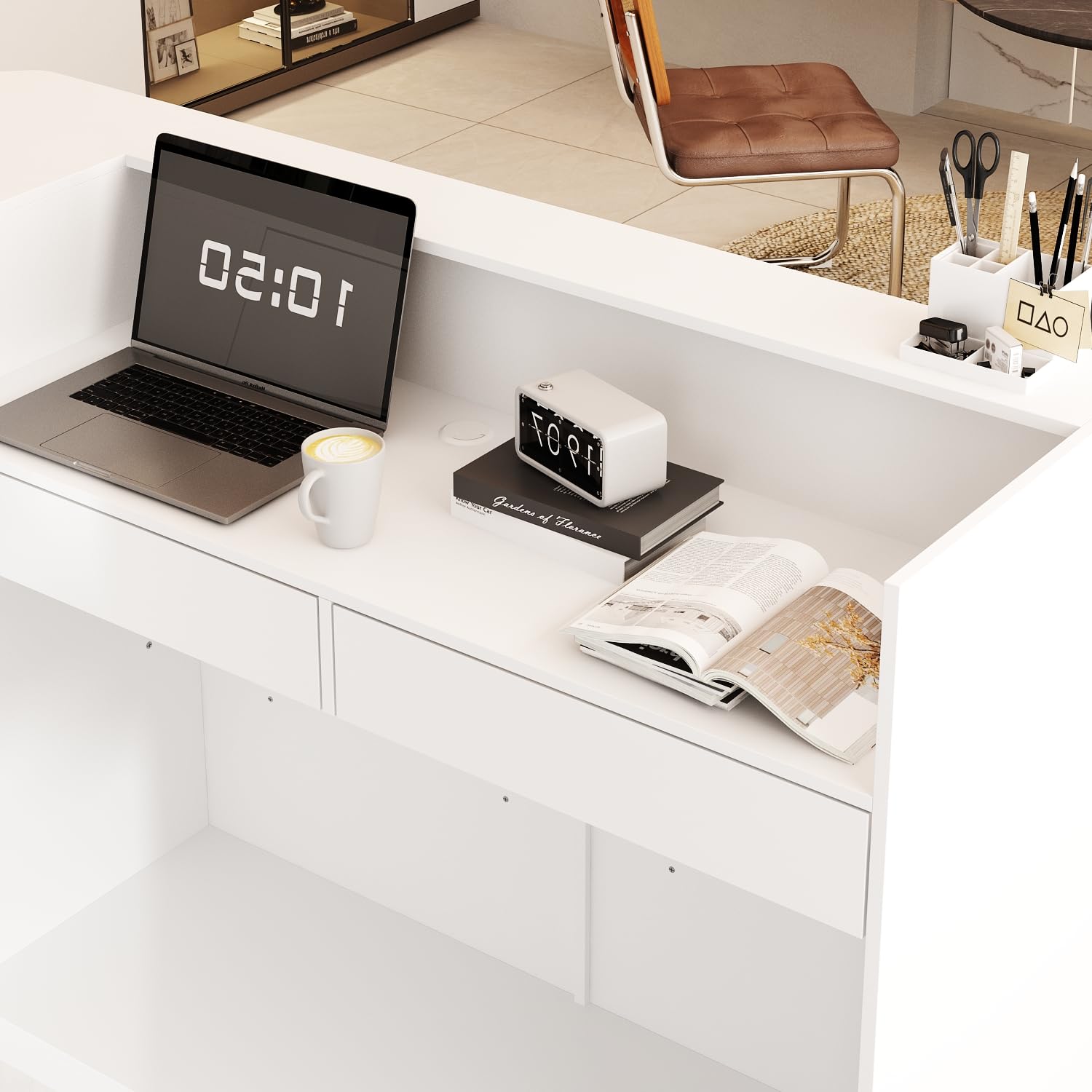 Professioneller Empfangsbereich für dein Business! Diese L-förmige Eck-Empfangstheke in Weiß mit den Maßen 100x180x120 cm ist perfekt für größere Geschäftsräume. Ob Supermarkt, Buchhandlung, Hotel-Lobby oder Firmenrezeption - dieser Tresen macht überall eine gute Figur. Mit 3 praktischen Schubladen und 1 Schrank bietet er reichlich Stauraum für Akten, Büromaterial und persönliche Gegenstände. So bleibt dein Arbeitsplatz immer ordentlich und aufgeräumt. Die verdickten MDF-Platten und stabilen 12-Zoll-Schienen garantieren Langlebigkeit. Besonders clever: Die großen Freiflächen an der Vorderseite eignen sich perfekt zur Produktpräsentation - deine Waren sind immer im Blickfeld der Kunden. Einfach in ca. 1 Stunde zusammenzubauen - mit klarer Montageanleitung und beschrifteten Teilen. Du erhältst 4 Pakete - bitte warte, bis alle angekommen sind, bevor du mit dem Aufbau beginnst. Schaffe einen professionellen Eindruck bei deinen Kunden mit dieser hochwertigen Empfangstheke!