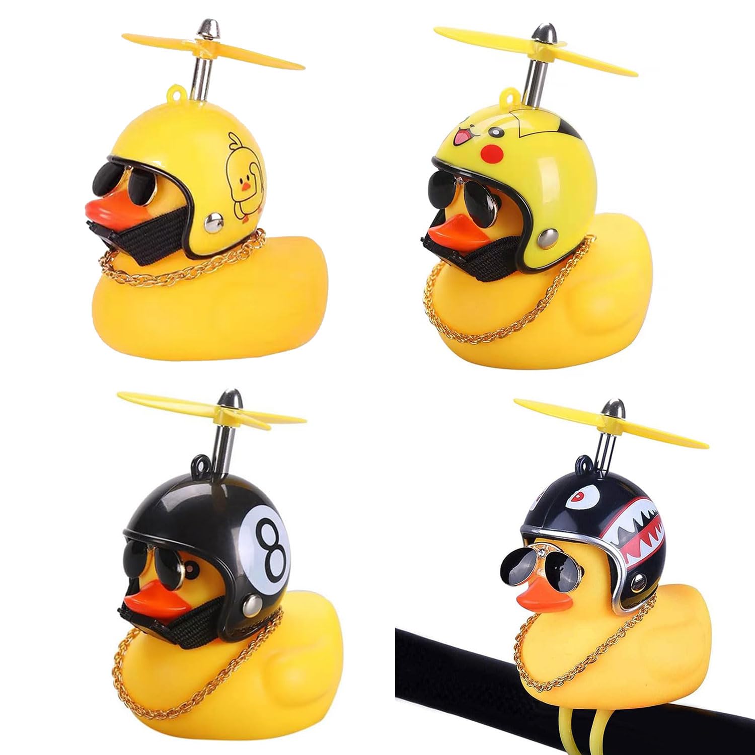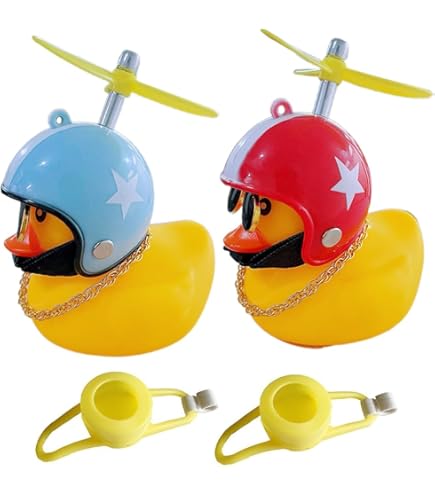 Mach dein Fahrrad zum echten Hingucker mit dieser super niedlichen Quietscheente! Die gelbe Ente mit coolen Helm und drehendem Propeller sorgt garantiert für gute Laune. Einfach am Lenker befestigen - kein Werkzeug nötig - und beim Drücken ertönt ein lustiges 'Quak' statt dem langweiligen Klingelton. \\n\\nDas Besondere: Die Ente hat auch noch LED-Licht mit Dauer- und Blinkmodus für bessere Sichtbarkeit bei Dunkelheit. Perfekt also nicht nur fürs Fahrrad, sondern auch für den Kinderwagen, als Autodekoration oder sogar als Stressabbau-Spielzeug im Büro. \\n\\nMit 10 x 7 x 5 cm ist sie genau die richtige Größe und wiegt nur 40 Gramm. Ein super Geschenk für Kinder ab 3 Jahren und alle, die ihrem Fahrrad eine persönliche Note verleihen wollen. Bringt nicht nur Sicherheit, sondern auch jede Menge Spaß!