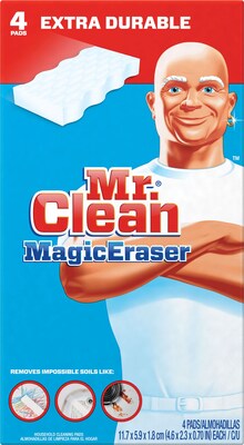 Zauberhaft sauber mit Mr. Clean! Diese Magic Eraser Schwämme in Extra Power machen selbst hartnäckigsten Schmutz weg wie von Zauberhand. Einfach nass machen und los schrubben - keine Chemie nötig! Perfekt für Flecken an Wänden, Türen, in der Küche oder im Bad. Entfernt Kratzer, Schuhspuren, Fett und vieles mehr. Schonend zu Oberflächen aber extrem effektiv. Die 4er-Packung reicht für lange Zeit und viele Reinigungsaktionen. Ob für zu Hause, im Büro oder in der Werkstatt - diese Wunderschwämme sind immer praktisch. Einfach ausprobieren und staunen was alles sauber wird! Seit Jahren der Geheimtipp für blitzblanke Sauberkeit ohne großen Aufwand. Einfach genial!