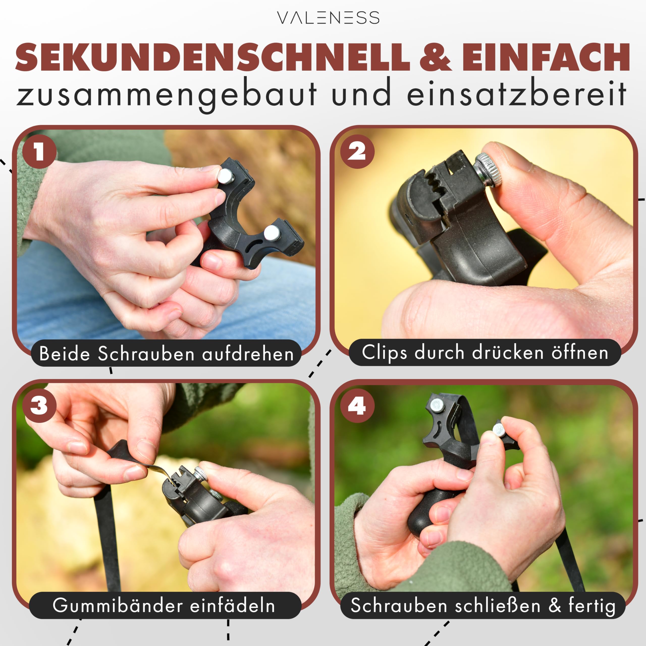 Diese Edelstahl-Ersatzringe für deine Zwille sind genau das, was du brauchst! 4 Stück im Set - falls mal einer verloren geht. Aus robustem Edelstahl gefertigt, rostfrei und extrem langlebig. Mit 4,0x2,8x1,8cm perfekt für Standard-Gummibänder. Das rahmenlose Design ist nicht nur sicherer, sondern auch leichter und handlicher. Einfach den Clip drücken, Gummiband einlegen, Clip loslassen - fertig! Die glatte Oberfläche ohne scharfe Kanten schützt deine Finger. Perfekt für Outdoor-Zielübungen, Jagd oder einfach nur zum Spaß haben. Ob du erfahrener Zwille-Nutzer bist oder gerade erst anfängst - diese Ringe machen dich bereit für Action! Besonders praktisch: Sie wiegen fast nichts und passen in jede Tasche. Nie wieder ärgern, wenn ein Ring kaputt geht oder verloren wird - mit 4 Stück hast du immer Ersatz parat. Für mehr Spaß und Sicherheit beim Zwillen-Schießen!