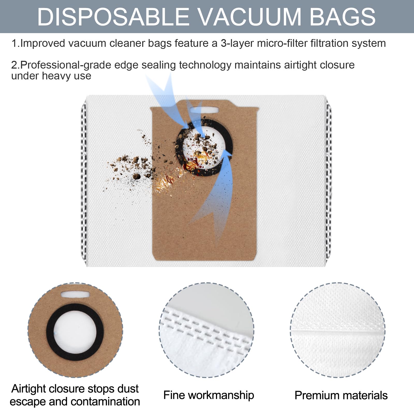 Dein Staubsauger braucht mal wieder neue Teile? Dieses Komplett-Set hat alles, was du brauchst! Enthalten sind: 1 Hauptbürste mit Anti-Tangling-Technologie gegen lästige Haare, 4 Seitenbürsten mit Zero-Tangle Design, 4 HEPA-Filter die 99,99% der Feinstaubpartikel filtern, 4 staubdichte Staubbeutel und 4 super saugfähige Wischtücher. Kompatibel mit Proscenic Q8 Max, Mova E20 PLUS, MONSGA MS1 Max und Liectroux M70 Pro - bitte vorher Modellnummer checken! Die Hauptbürste reinigt Teppiche und Hartböden gründlich, während die Wischtücher für glänzende Böden sorgen. Alles waschbar und wiederverwendbar - umweltschonend und kostensparend! Einfach die alten Teile austauschen und dein Sauger ist wieder wie neu. Perfekte Lösung für alle, die ihren Staubsauger lange fit halten wollen!