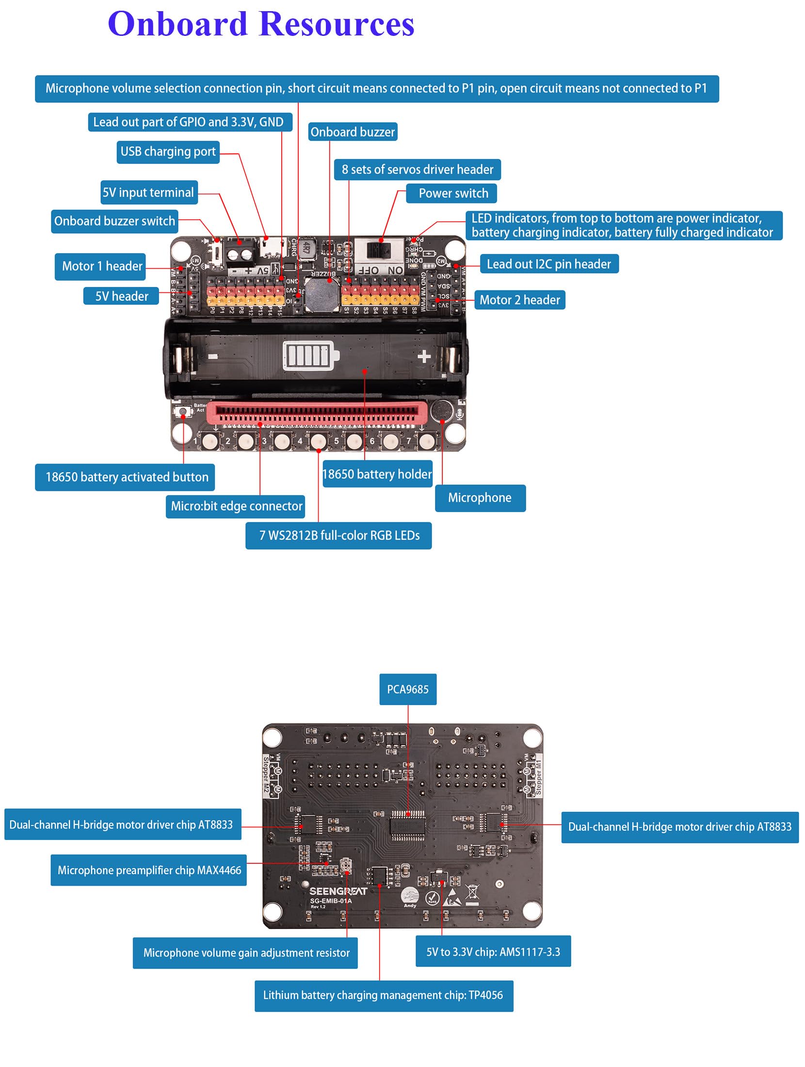 • Xicoolee Micro:Bit Erweiterungsplatine - Mit Motor-Servo-Treiber & RGB-LEDs