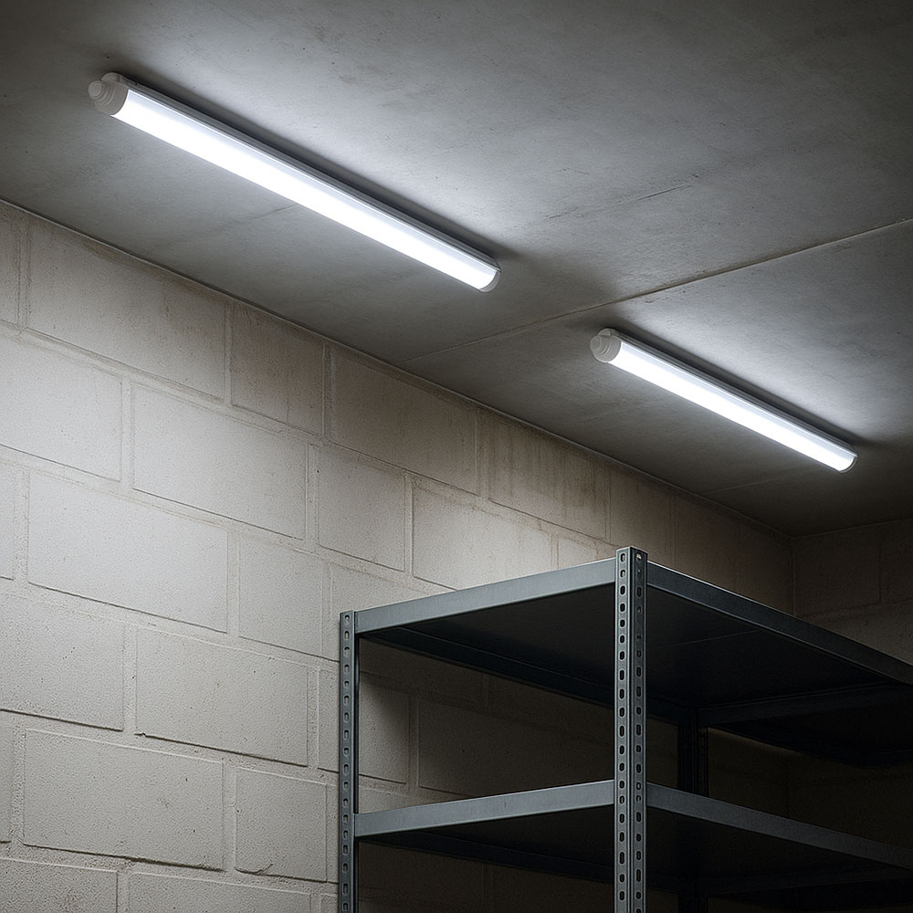 Hey, brauchst du zuverlässige Beleuchtung für feuchte Räume? Diese LED Wannenleuchte von etc-shop ist perfekt für Keller, Garage, Werkstatt oder sogar draußen. Mit 127cm Länge und 18W Leistung bringt sie satte 1700 Lumen - richtig hell! Die IP65 Schutzart macht sie staubdicht und strahlwassergeschützt. In kaltweiß (6400K) für optimale Ausleuchtung. Das LED-Röhre ist bereits enthalten und hält bis zu 30.000 Stunden - super langlebig und energiesparend. Einfach an die Decke montieren, und du hast perfektes Licht für alle Nassräume. Ob beim Reparieren, Waschen oder Lagern - mit dieser Leuchte siehst du immer klar. Robust, sicher und effizient - genau das, was du brauchst!