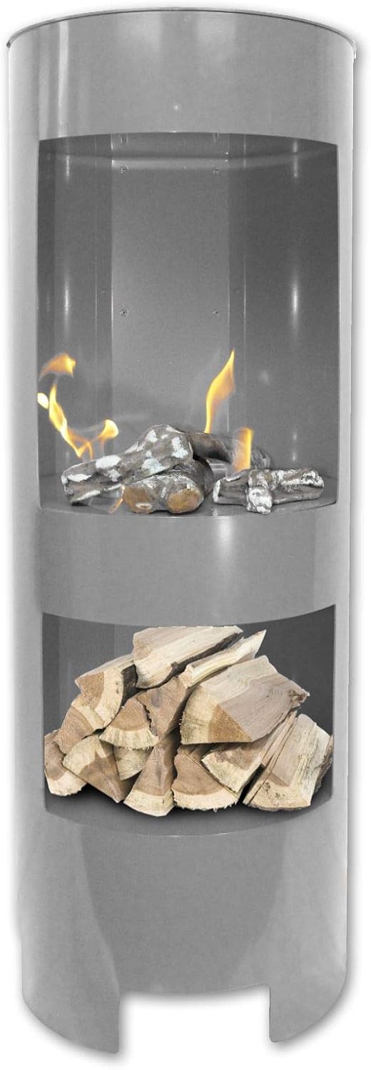Mensch, dieser Ethanol-Kamin Hightower ist der absolute Hammer! 100cm hoch in schickem Silber - ein echter Blickfang für jedes Wohnzimmer. Komplett vormontiert geliefert, also einfach aufstellen und sofort benutzen. Kein Schornstein nötig, keine Genehmigung, kein Ruß oder Dreck - einfach reines Feuer-Vergnügen! Betrieb mit Brenngel oder Bio-Ethanol, Heizleistung ca. 3,5 kW - wärmt richtig gut. Das integrierte Holzfach gibt dem Kamin einen authentischen Look, obwohl kein Holz verbrannt wird. Maße: 100cm Höhe, 37cm Breite, 35cm Tiefe - perfekt für die meisten Räume. Die Pulverbeschichtung bei 600°C macht den Kamin rundum rostfrei und super pflegeleicht. Inklusive 3 Brennstoffdosen - kannst also sofort loslegen. Ob im Wohnzimmer, auf der Terrasse oder im Partykeller - überall macht dieser Kamin eine mega Stimmung. Sicherer Betrieb, keine Funken, keine Asche - einfach genial für moderne Wohnungen ohne Schornstein. Einfach ein traumhafter Kamin, der ohne großen Aufwand echten Flammenzauber bringt!