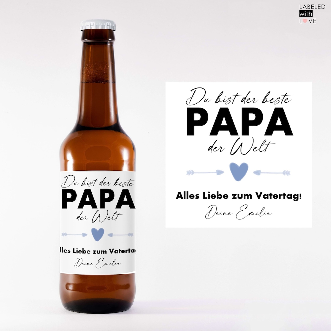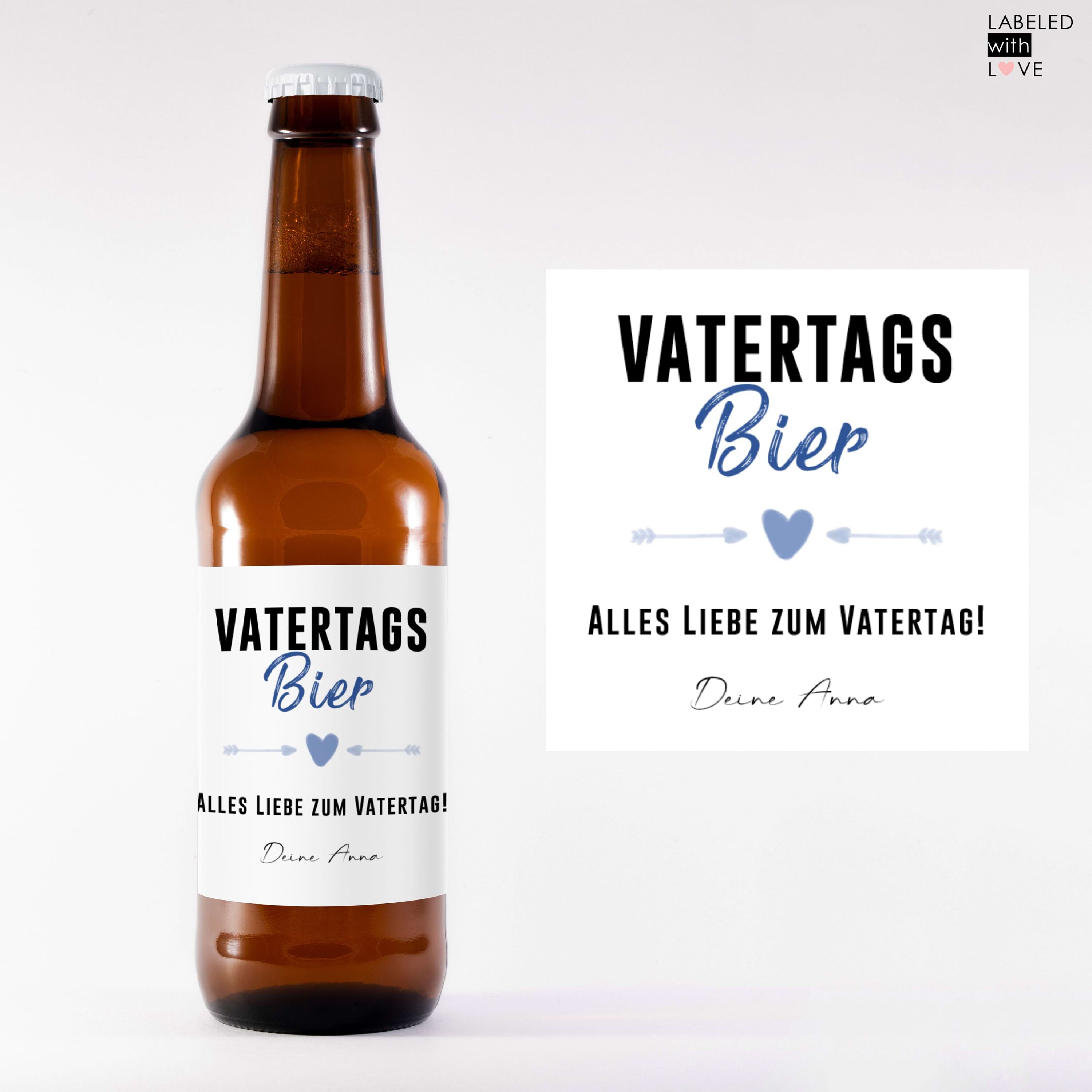 Das perfekte Geschenk für Papa zum Vatertag! Diese personalisierten \\\Vatertagsbierchen\\\-Etiketten verwandeln jede normale Bierflasche in eine persönliche Überraschung. Einfach den Namen deines Vaters angeben und schon wird das Etikett mit der Aufschrift \\\Vatertagsbierchen für [Name]\\\ individualisiert.