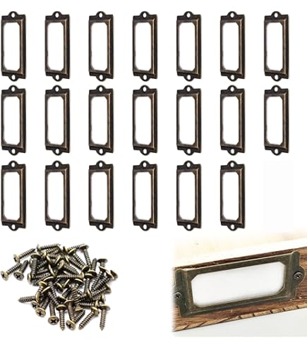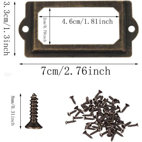 Diese vintage-style Metall-Etikettenhalter sehen einfach klasse aus! Im 10er-Set bekommst du robuste Rahmen in Bronzefarben, die jedem Dokument oder Schild einen professionellen Look verleihen. Mit 85x42mm Außenmaß passen Etiketten bis 56x26mm perfekt hinein. Einfach das Etikett einsetzen, mit den beiliegenden Schrauben befestigen - und schon hast du eine dauerhafte Beschriftung. Perfekt für Büros, Archive, Poststellen oder auch zu Hause für Ordnungssysteme. Die metallene Optik im Retro-Design macht einfach was her und die Halterungen sind super langlebig. Damit bringst du Ordnung und Stil in deine Ablagesysteme!