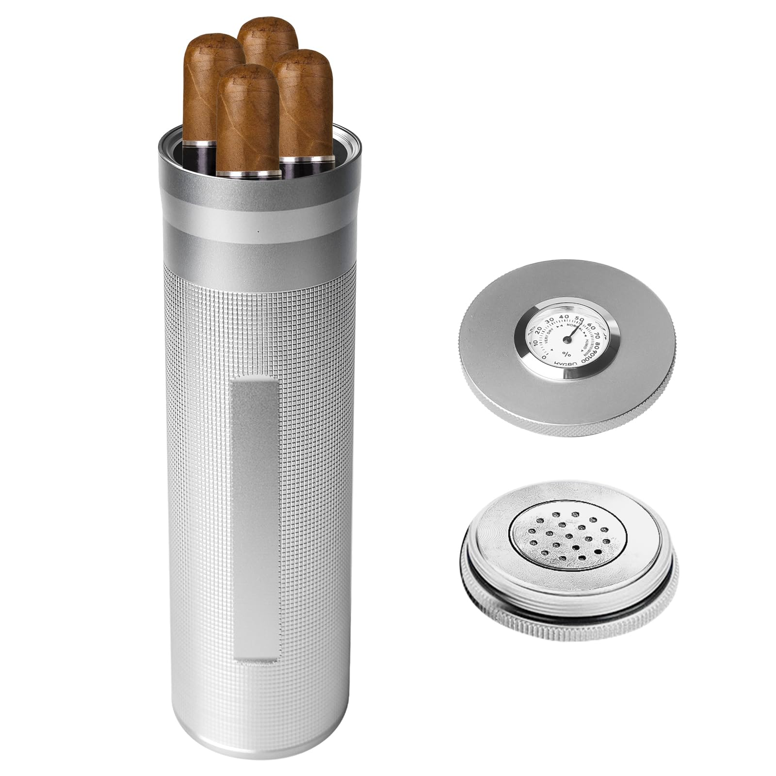 Mit 1,97x1,97x7,87 Zoll kompakt aber geräumig. Das starke Aluminiumgehäuse schützt vor Stößen und ist korrosionsbeständig. Integriertes Hygrometer zeigt dir immer die Luftfeuchtigkeit an. Der Befeuchter hält die optimale Feuchtigkeit für deine Zigarren. Das dichte Verschlusssystem sorgt für perfekte Lagerung. Inklusive Kordelzug-Tasche und Geschenkbox - perfekt als Geschenk für Zigarrenliebhaber zu Weihnachten oder Vatertag. Qualität die man sieht und schmeckt!