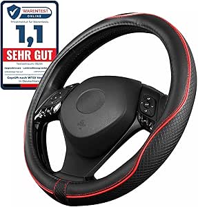 Fahrspaß mit Style! Dieser Leder-Lenkradbezug im schickem Schwarz-Weiß-Karo-Design macht dein Auto-Innenleben sofort cooler. Aus hochwertigem, umweltfreundlichem Leder gefertigt, ist er weich, aber rutschfest - perfekt für sicheren Halt. Der Gummi-Innenring sorgt für perfekten Sitz ohne Verrutschen und schützt dein Original-Lenkrad vor Abnutzung. Passt für die meisten 15-Zoll-LenkRäder (38 cm Durchmesser) - einfach vorher messen! Das modische Design mit feiner Laufstich-Nähtung sieht einfach klasse aus. Auch super praktisch: hitze- und kältebeständig, für alle Jahreszeiten geeignet. Einfach überziehen, festziehen und schon hast du ein neues Lenkradgefühl! Perfekt als Geschenk für Auto-Fans oder einfach als Upgrade für dein eigenes Fahrzeug. Für mehr Komfort und Sicherheit beim Fahren - und natürlich für den Style-Faktor!