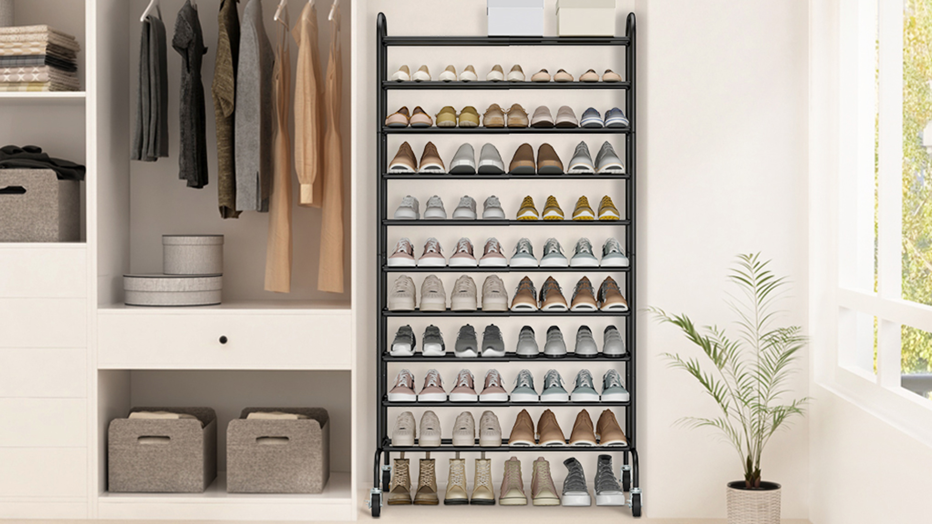 Endlich Ordnung im Schuhchaos! Dieses geniale Schuhregal aus stabilem 304er Edelstahl (1,2mm Dicke) wächst mit deinen Bedürfnissen - von 40cm bis 70cm Länge verstellbar! Perfekt für den Flur, Kleiderschrank oder die Wohnung. Jede Etage trägt bis zu 7kg und bietet Platz für 4-6 Paar Schuhe. Die offene Bauweise sorgt für gute Belüftung, damit deine Sneakers und Stiefel immer frisch bleiben. Super einfach montiert - ganz ohne Werkzeug! Einfach die Haken an der gewünschten Oberfläche (Holz, Laminat, Spanplatte) befestigen und schon kann's losgehen. Die abgestuften Etagen nehmen sowohl hohe Stiefel als auch flache Schuhe auf. Mit 6,5cm Abstand zwischen den Schienen ist alles perfekt organisiert. Ob im Studentenwohnheim, Flur oder Garage - dieses Regal bringt System in deine Schuhsammlung!