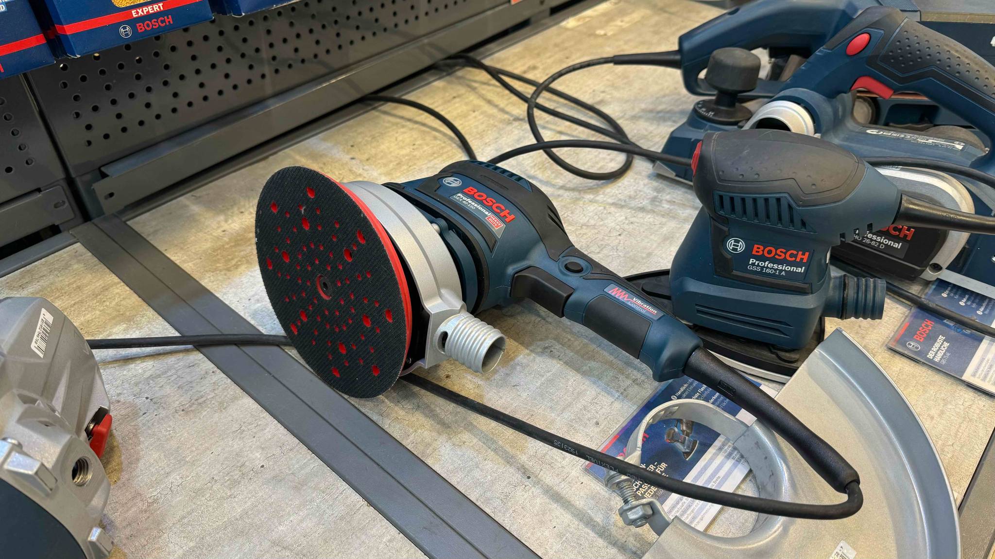 Profischleifer für anspruchsvolle Arbeiten! Dieser Bosch Professional Exzenterschleifer mit 150mm Schleifkörper-Ø ist ein echter Kraftprotz. Mit 12.000 U/min Leerlaufdrehzahl und 170 Watt Leistung meistert er auch harte Einsätze. Der 2,5mm Hub sorgt für effizientes Schleifen, während das ausgewuchtete Exzenter-System Vibrationen reduziert - super angenehm bei langen Arbeiten! Die integrierte Absaugung funktioniert hervorragend und hält deinen Arbeitsplatz sauber. Besonders praktisch: Das staubgeschützte Doppelkäfiglager garantiert Langlebigkeit, und der kälteisolierende Griff liegt perfekt in der Hand. Mit nur 0,7kg Gewicht ist der Schleifer angenehm leicht. Im Lieferumfang sind schon Stecknippel und Klauenmaulschlüssel dabei - alles was du brauchst! Ob in der Werkstatt, auf der Baustelle oder im Hobbykeller - dieser Bosch Schleifer ist dein zuverlässiger Partner für perfekte Oberflächen. Einfach ans Druckluftnetz anschließen und loslegen!