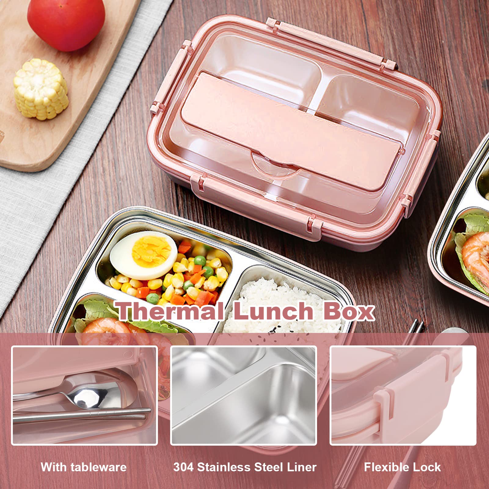 Wow, diese Edelstahl-Lunchbox mit 3 Fächern ist einfach praktisch! Jedes Fach ist komplett auslaufsicher verschlossen - da bleibt alles da, wo es hingehört. Mit den Maßen 22,8x16,5x7cm passt sie perfekt in jede Tasche und bietet trotzdem genug Platz für Obst, Sandwich und Snacks. Die farbige Außenschale in Rosa (auch in Blau, Gelb, Orange, Braun und Grün erhältlich) sieht super stylisch aus, während das Edelstahl-Innenfutter lebensmittelecht und geruchsneutral ist. Die 4 seitlichen Riegel halten alles sicher verschlossen, sind aber trotzdem leicht zu öffnen. Das herausnehmbare Edelstahl-Tablett ist spülmaschinenfest - super einfach zu reinigen! Perfekt fürs Büro, Schule, Uni oder Outdoor-Aktivitäten. Nur wichtig: Das Edelstahl-Tablett ist nicht mikrowellengeeignet, also lieber alternative Aufwärmmethoden nutzen. Einfach ein toller Begleiter für jeden Tag - gesundes Essen unterwegs war noch nie so einfach!
