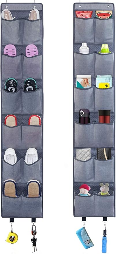 Schluss mit Schuhchaos! Dieser praktische Tür-Organizer mit 12 großen Fächern bietet Platz für alle deine Schuhe - von Hausschuhen über Turnschuhe bis zu High Heels. Mit den Maßen 41,5cm breit, 15cm tief und 75cm hoch passt er perfekt an Schranktüren und in schmale Durchgänge. Das Besondere: 6 robuste Haken (3 abnehmbar, 3 fest) bieten zusätzlichen Stauraum für Regenschirme, Rucksäcke oder Schlüssel. Hergestellt aus atmungsaktivem, reißfestem Vliesstoff mit stabilen Faserrohren für hohe Tragfähigkeit. Ohne Werkzeug montierbar - einfach über die Tür hängen und sofort nutzen. Aber nicht nur für Schuhe: Ideal auch für Spielzeug, Küchenutensilien, Reinigungsmittel oder Tierbedarf in Schlafzimmer, Bad, Waschküche oder Wohnmobil. Maximale Platznutzung ohne Bohren!