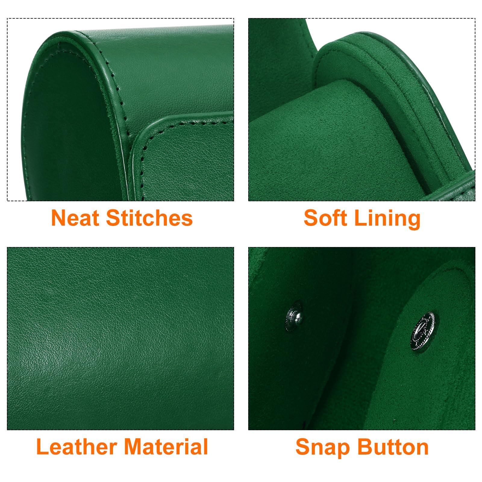 Deine Uhr verdient den besten Schutz! Dieses elegante Uhrenetui aus Kunstleder in schickem Grün bewahrt deine Lieblingsuhr sicher auf - ob zu Hause oder unterwegs. Innen ist es mit weichem Samt ausgekleidet, der deine Uhr vor Kratzern und Staub schützt. Mit den Maßen 10x7,5x7 cm ist es kompakt genug für die Reisetasche, aber groß genug für die meisten Armbanduhren. Einfach aufklappen, Uhr in den Schlitz legen und die Rolle drumwickeln - schon ist deine Uhr sicher verstaut und geschützt. Perfekt für Geschäftsreisen, Urlaub oder einfach zur Aufbewahrung daheim. Das Roll-Design sorgt dafür, dass die Uhr nicht verrutscht und geschützt bleibt. Ob für Herren- oder Damenuhren - dieses Etui ist der ideale Begleiter für alle, die Wert auf ihre Uhren legen. Sieht nicht nur gut aus, sondern ist auch super praktisch! Deine Uhr wird es dir danken - keine Kratzer mehr, keine Beschädigungen, einfach nur sicherer Transport.