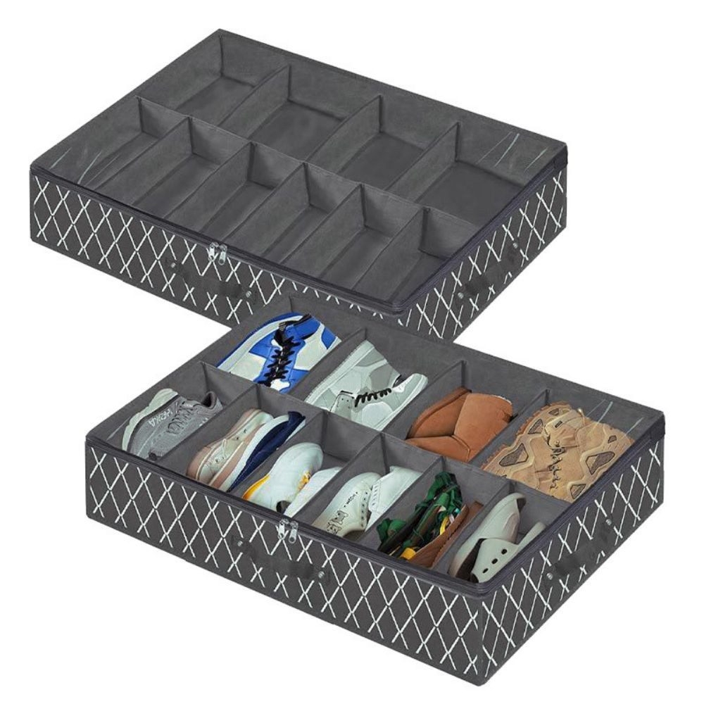 • WENKO Schuh-Unterbettkommode Für 12 Paar Schuhe | 74x15x60cm Schuhschrank Aus Polypropylen - Grau
