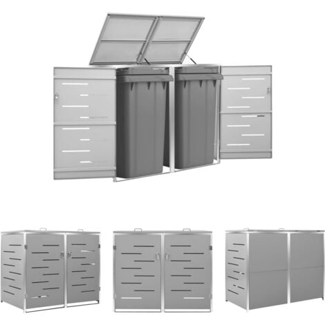 Mülltonnenbox Für 2 Tonnen 138x77,5x115,5cm - Edelstahl Rahmen Grau