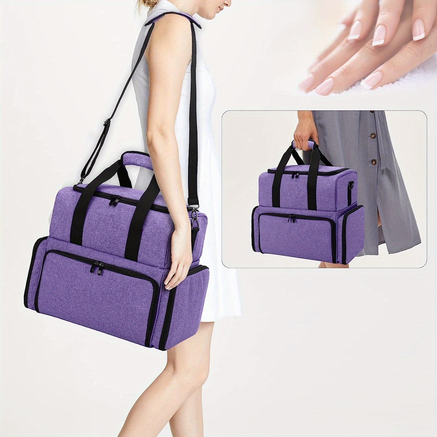 Das doppelschichtige Design ist super praktisch: Oben findest du elastische Taschen, Reißverschlussfächer und ein herausnehmbares EVA-Fach speziell für die Nagellacke. Alles hat seinen festen Platz und ist gut geschützt.